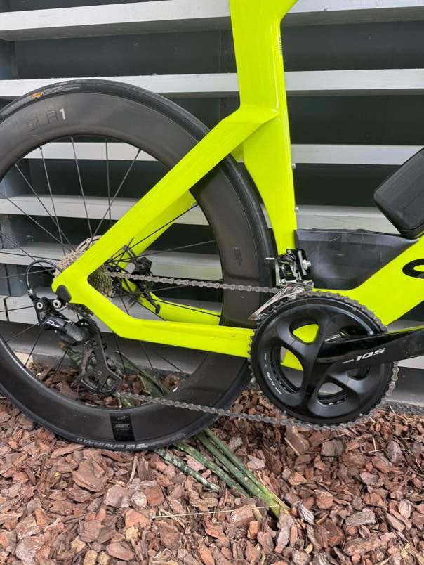 Shimano 105 y ruedas SLR1 de perfil alto para mayor estabilidad y velocidad en carretera.