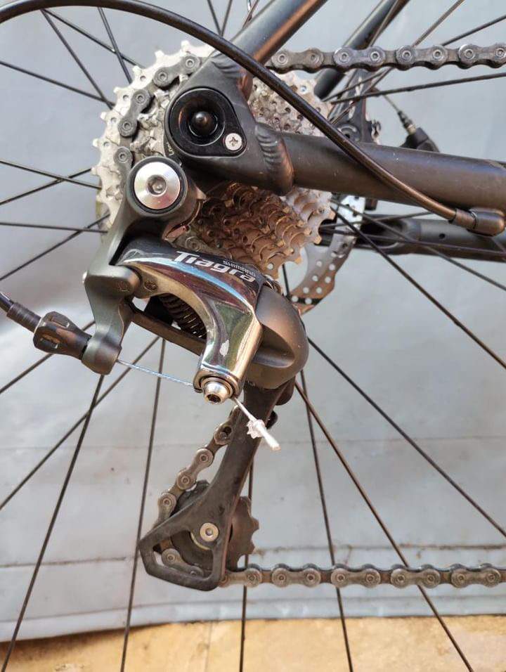 Tiagra. Tiene modificación de plato a uno más grande de 53 pero la vendo con el original también de repuesto