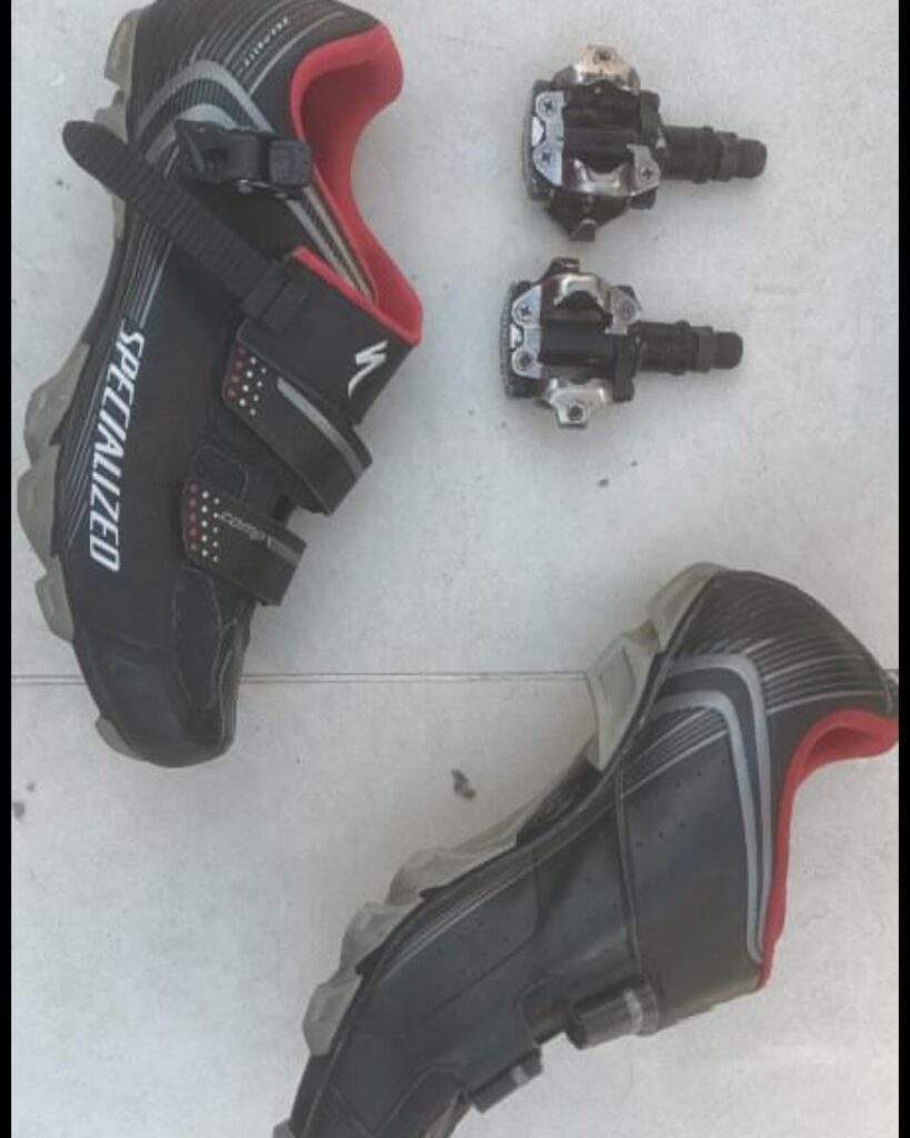 Zapatillas de ciclismo specialized talle 42 27cm y pedales de ciclismo extras shimano.