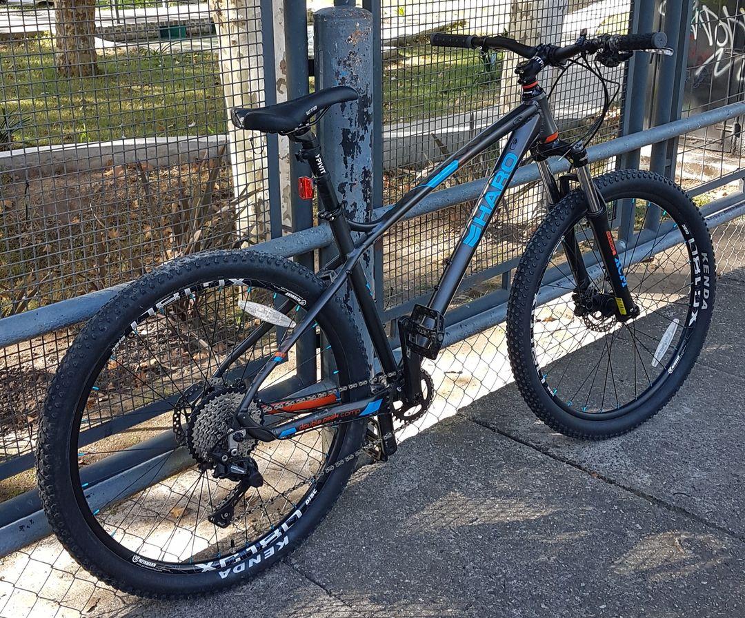 ⚙Características:Marca: Haro – Modelo: Double Peak Comp – Talle: M – Rodado 27,5″ Cuadro de aluminio con cableado interno – Horquilla: Suntour XCM con bloqueo remoto – Transmisión: Shimano Deore 1×10 (11-42t) – Plato: Microon 36t (se entrega tambien plato FSA de 30t que vino con la bici) – Cubiertas: Kenda Honey Badger XC 2.2″ – Frenos: Shimano M365 hidráulicos
