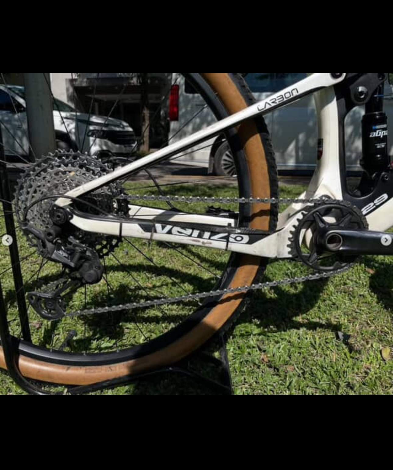 Venzo Xtreme 2023 taller L horquilla Suntour Axon 34, transmisión XT, cadena SLX, rueda delantera B1 aluminio, rueda trasera AWA aluminio, tija carbono AWA, manubrio carbono B1. Sin puños y pedales